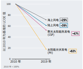 再生能源發(fā)電技術(shù)從2010年起成本不斷下降