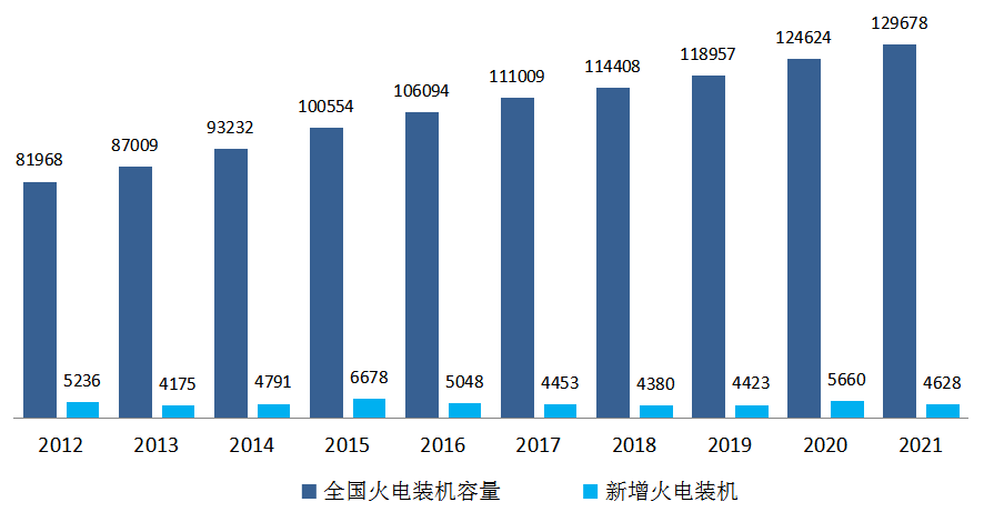 圖9 2012~2021年火電裝機和新增裝機情況(單位:萬千瓦)