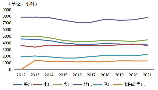 圖14 2012~2021年不同電源發電設備利用小時變動情況