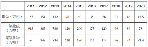 表9 2011~2020年電力行業排放總量情況(單位:萬噸)