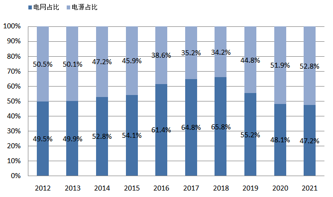 圖18 2012~2021年電網電源投資占比情況