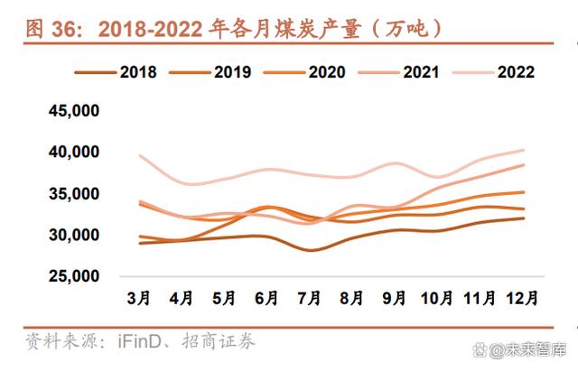 在保供政策的支持下,2022 年國內煤炭供應在進口煤炭價格暴漲的情況下基本維持穩定。2022 年,全國煤炭產量 45.6 億噸,同比增長 10.6%,比去年增加 4.4 億噸,創歷史新高。2022 年各個月煤炭產量在近五年均為最高。進口 煤炭 2.93 億噸,同比增長 43.34%,其中 8-12 月份煤炭進口量遠高于往年同期水平。庫存方面,2022 年全國煤炭庫 存由 1 月的 1945 萬噸增長到年末的 2057 萬噸,增長 5.7%。港口庫存上,秦皇島港、黃驊港煤炭庫存 2022 年內均 有上升,其中秦皇島港年內最高庫存達到 592 萬噸,相較于年初增長 31.8%。內陸省份上,東北、華東、西南、西北 煤炭庫存在年內均有上漲,六大發電集團(國家電投、華能集團、國家能源集團、華電集團、大唐集團、三峽集團) 煤炭庫存在年末達到 1206.8 萬噸,較年初增長 3.8%。